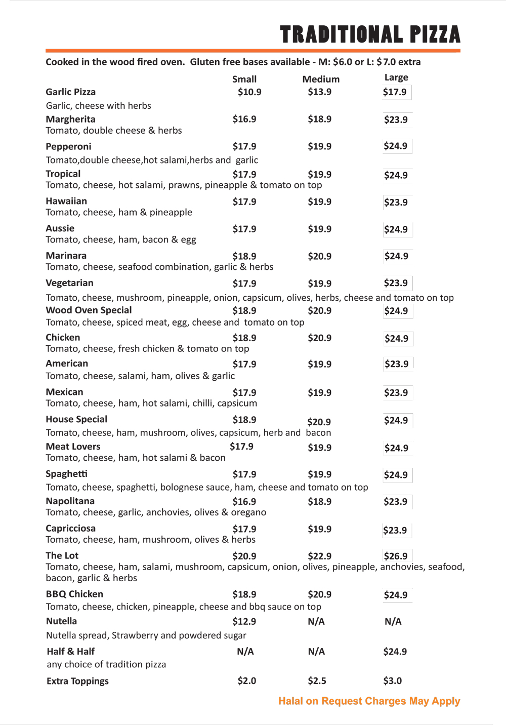 Wood Oven Pizza is The Best wood fire pizza restaurant established in 1971, situated in the heart of Geelong. Other than pizzas, we have wide variety of pasta, steaks and more follows by great wine or delicious coffee. Wood Oven Pizza has changed the location from Mercer Street to Roy street in year 2022, however, the hands are still the same. The new venue has the biggest wood fire oven with internal space of 2m, probably the biggest in Victoria. The total capacity of patrons are gone up-to 360 people with indoor and outdoor area. A great place to have parties, weddings or events. Additionally, the big screen outdoor plays a footy/soccer matches which gives all footy lovers a theatre experience enjoying with a glass of beer. Oh! We are the proud sponsor of Geelong Footy Club too !!